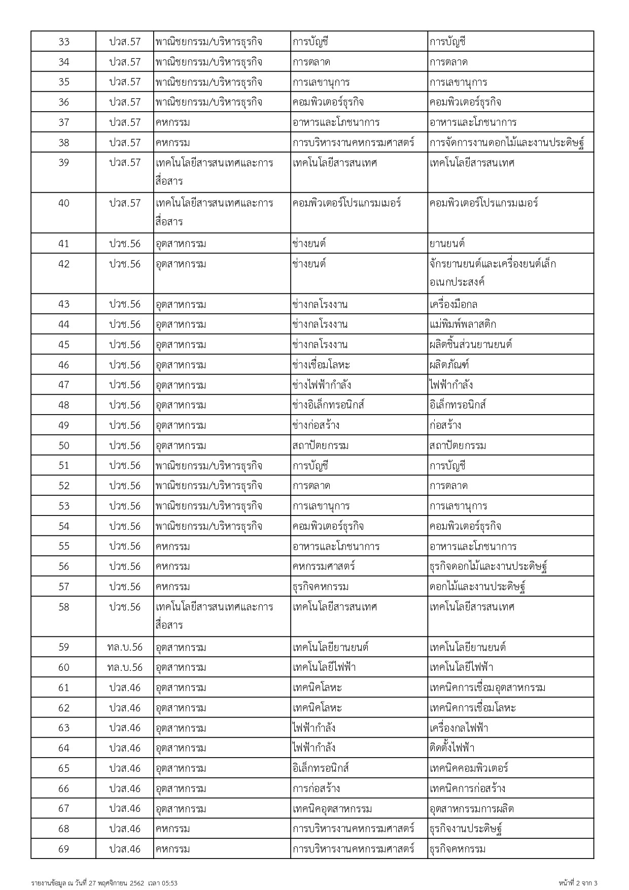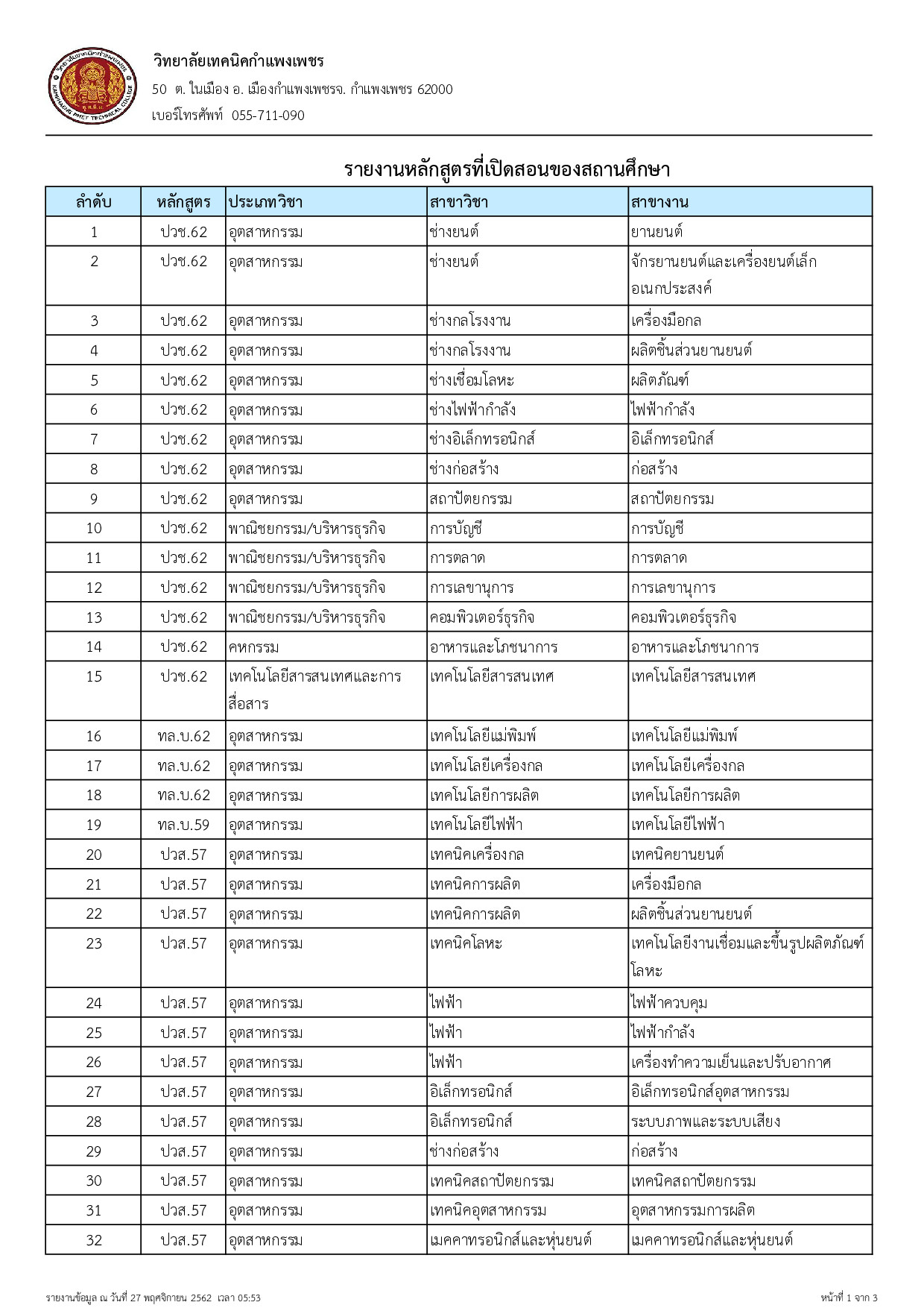 ข้อมูลหลักสูตรที่เปิดสอน
