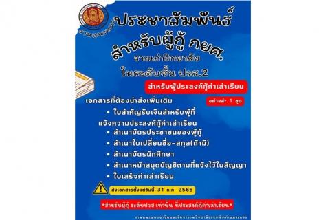 ประชาสัมพันธ์ ผู้กู้กยศรายเก่า * ที่กู้ค่าเทอม * สามรถแนบใบเสร็จค่าเทอม ที่จ่ายตามจริง อ่านต่อ