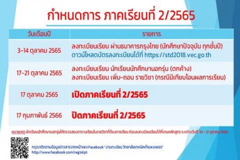 ข่าวสารจากงานทะเบียนวิทยาลัยเทคนิคกำแพงเพชร เรื่องกำหนดการภาคเรียนที่ 2/2565 อ่านต่อ