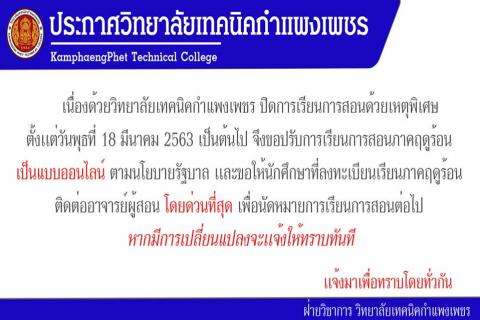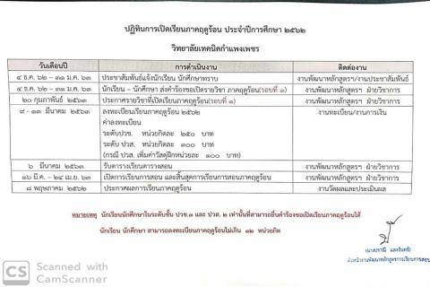 ปฏิทินการเปิดเรียนภาคฤดูร้อน ประจำปีการศึกษา 2562 อ่านต่อ