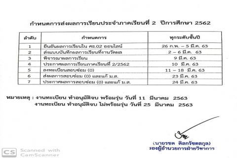 เรื่องกำหนดการส่งผลการเรียน ประจำภาคเรียนที่ 2 ปีการศึกษา 2562 อ่านต่อ