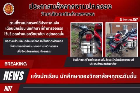แผนกวิชาช่างยนต์ : โครงการมอบรถจักรยานให้เด็กเรียนดี ที่มีบ้านอยู่ไกลโรงเรียน อ่านต่อ