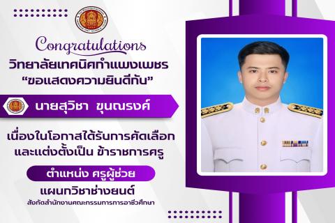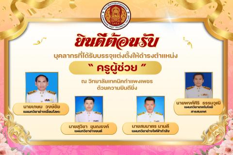 วิทยาลัยเทคนิคกำแพงเพชร ยินดีต้อนรับ ครูผู้ช่วยป้ายแดง อ่านต่อ
